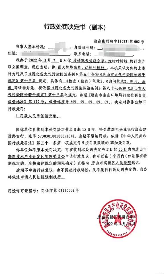 行政處罰決定書(唐高街罰決字【2022】第002號)