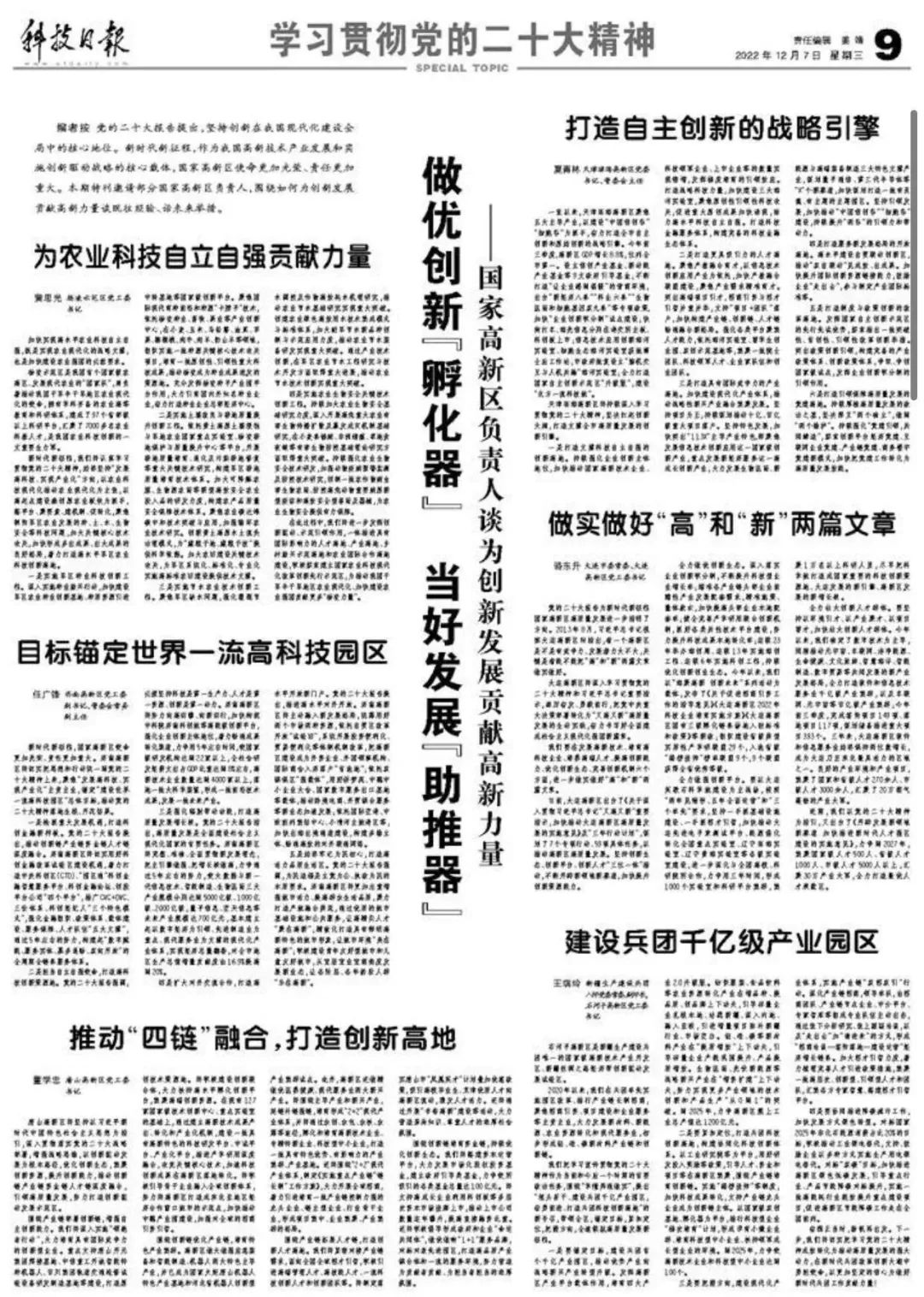 ——國家高新區負責人談為創新發展貢獻高新力量