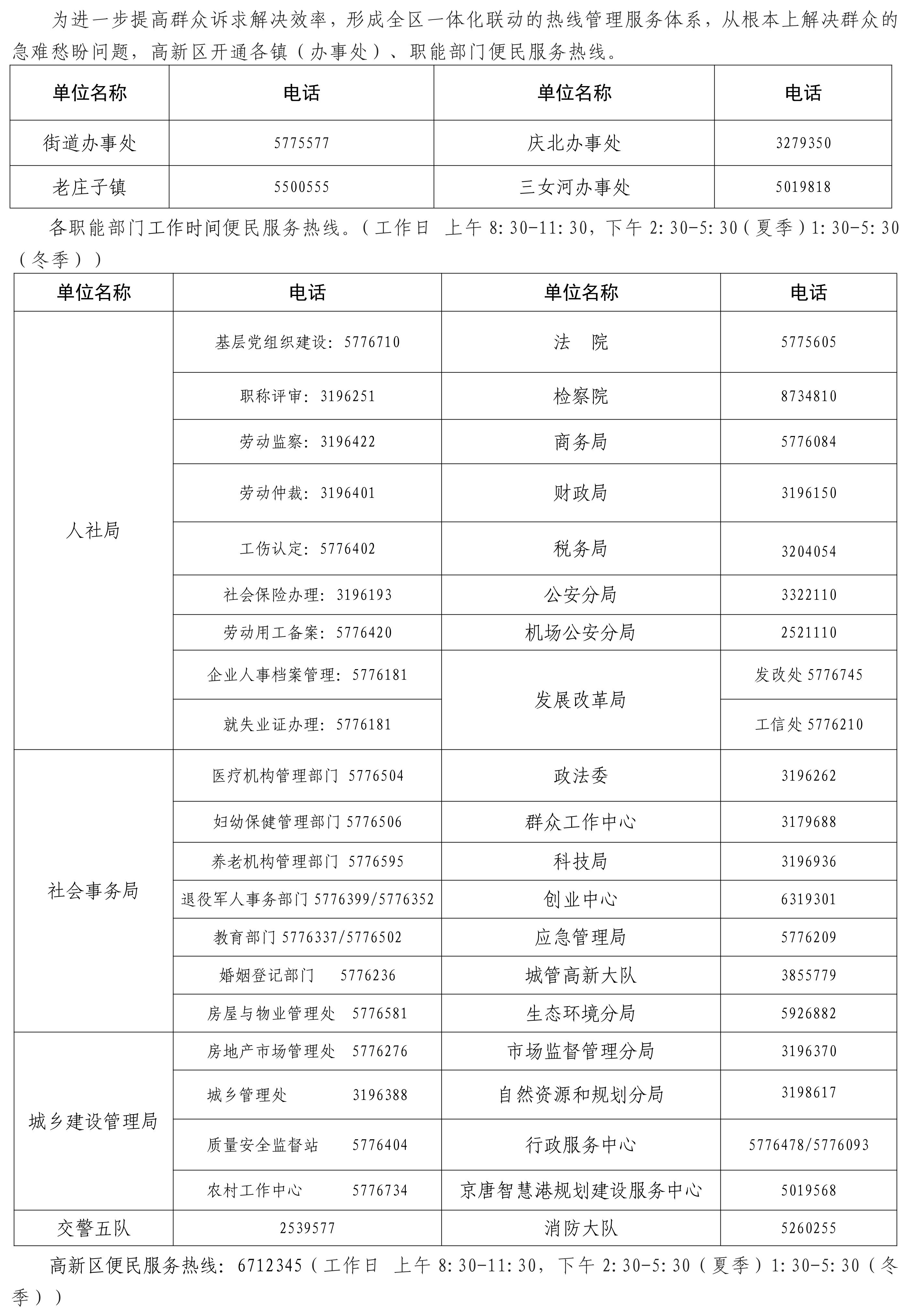 鄉街!部門!高新區公布便民服務熱線