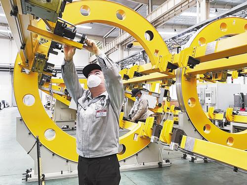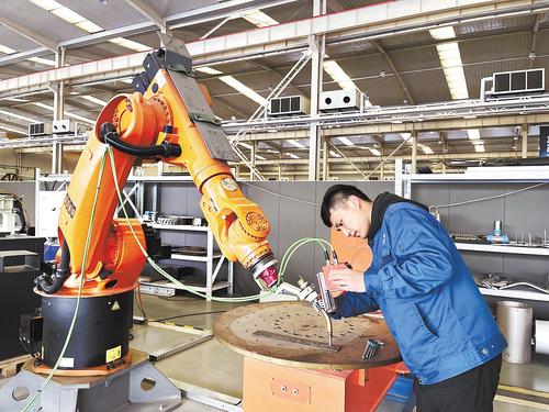 近日,在唐山開元自動焊接裝備有限公司組裝車間,工人正在組裝調試焊接機器人。河北日報記者師源攝