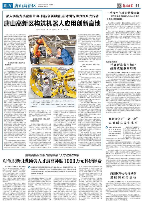 總投資3.1億元的百川軌道交通智能裝備產業化二期項目加快推進中;總投資1.1億元的鷹眼智能機器視覺應用智能裝備產業化基地項目正進行內外裝修,預計8月底投入使用……今年以來,聚焦工業機器人和特種機器人重點領域,唐山高新區實施龍頭企業帶動行動,推動唐山開元電器集團、中信重工開誠智能裝備有限公司、唐山百川智能機器股份有限公司等一批創新能力強、引領作用大的科技領軍企業高質量發展,并健全“資源共享、協同創新、科技轉化”發展鏈條,打造產業聚集高地。