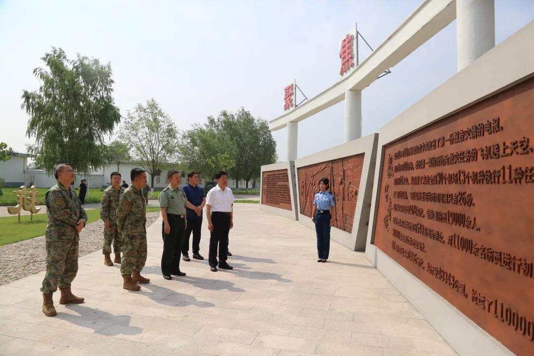 張太富一行來到空軍唐山場站抗震救災模范場站紀念廣場,認真聽取了場站部隊感人的抗震事跡,并與部隊領導進行了親切交談,詳細了解值勤、訓練和生活情況。