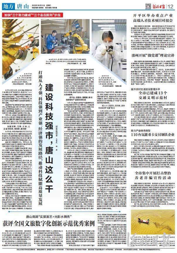 今年以來,唐山以實(shí)施創(chuàng)新驅(qū)動(dòng)發(fā)展戰(zhàn)略為主線,以推動(dòng)科技賦能高質(zhì)量發(fā)展為目標(biāo),堅(jiān)持以創(chuàng)新要素涌流開辟發(fā)展新領(lǐng)域新賽道,努力打通從人才強(qiáng)、科技強(qiáng)到產(chǎn)業(yè)強(qiáng)、經(jīng)濟(jì)強(qiáng)的路徑,加快建設(shè)科技強(qiáng)市、創(chuàng)新型唐山。