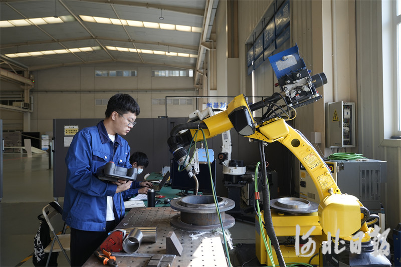 10月25日,在國家火炬唐山機(jī)器人特色產(chǎn)業(yè)基地孵化中心,英萊科技工程師正在對大型管板組件進(jìn)行激光焊縫跟蹤試驗(yàn)。通訊員趙亮攝