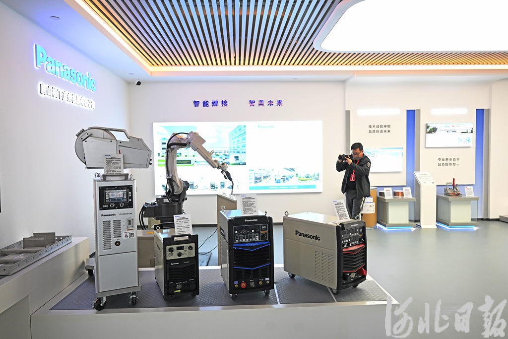 1月7日,參觀者在唐山機器人展示體驗中心拍攝“機器人+”產品。