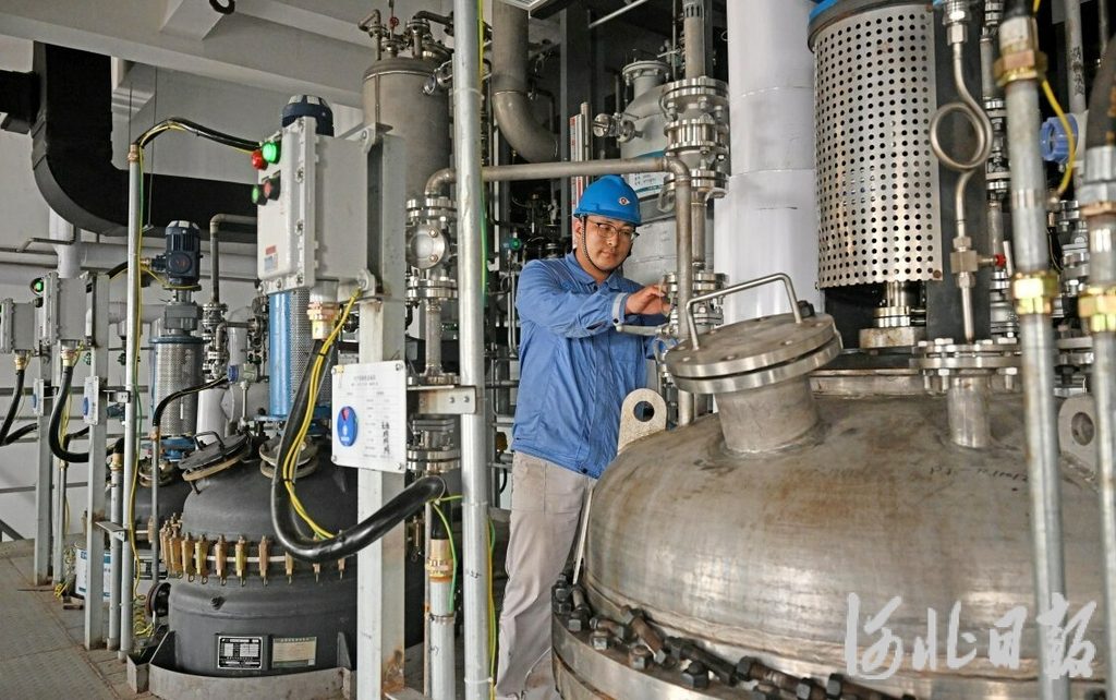2024年7月23日,京津冀·滄州生物醫(yī)藥產(chǎn)業(yè)園,北京金城泰爾制藥有限公司滄州分公司員工在原料藥生產(chǎn)車間查看設(shè)備。河北日報記者 張 昊攝
