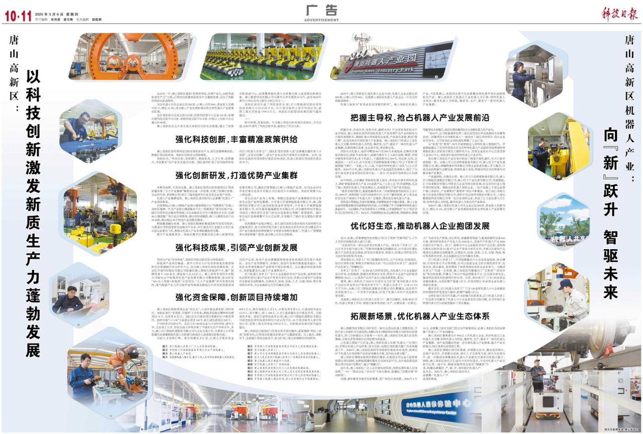 近日,科技日報以《唐山高新區:以科技創新激發新質生產力蓬勃發展》為題,整版聚焦唐山高新區科技創新發展成果。現將原文轉載如下: