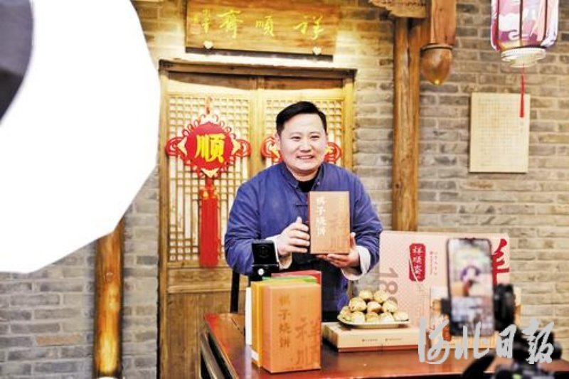 “家人們,我手里這款棋子燒餅外皮酥脆,內餡飽滿,肉香四溢……”3月24日,在唐山祥順齋餐飲服務有限公司,總經理谷小光正在進行直播。