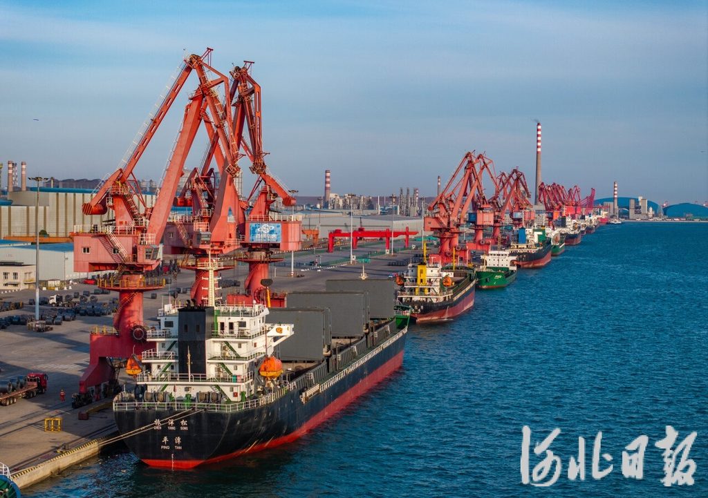 5月15日,貨輪在首鋼京唐公司碼頭進行裝卸作業。河北日報記者趙杰攝