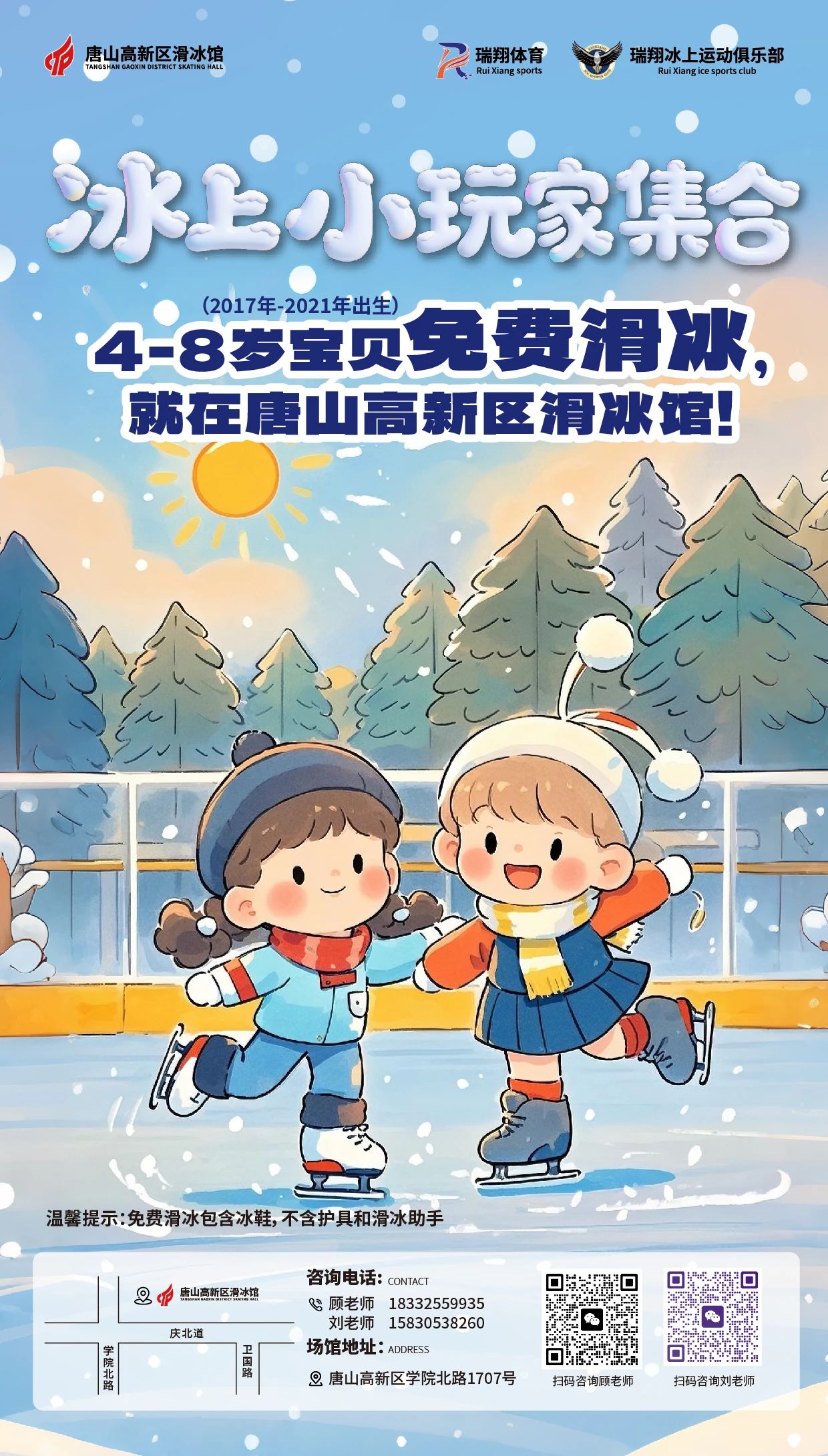 唐山家長速看!高新區滑冰館放大招,4-8歲萌娃免費暢滑!
