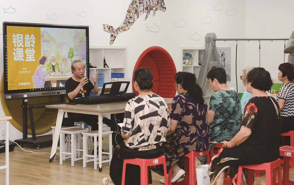 圖為課堂上,社區(qū)退休音樂老師圍繞“音樂,走進(jìn)你我生活”主題,與大家交流音樂知識,豐富老年文化生活。