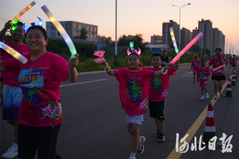 此次熒光跑分為個人組與家庭組,全程4.5公里,以唐山高新區滑冰館為起終點,途經學院北路、北安道等城市地標,沿途夜景與參賽者熒光配飾交相輝映。參賽者們一邊奔跑,一邊欣賞著燈光夜景,現場氛圍熱烈,加油聲、歡笑聲此起彼伏。