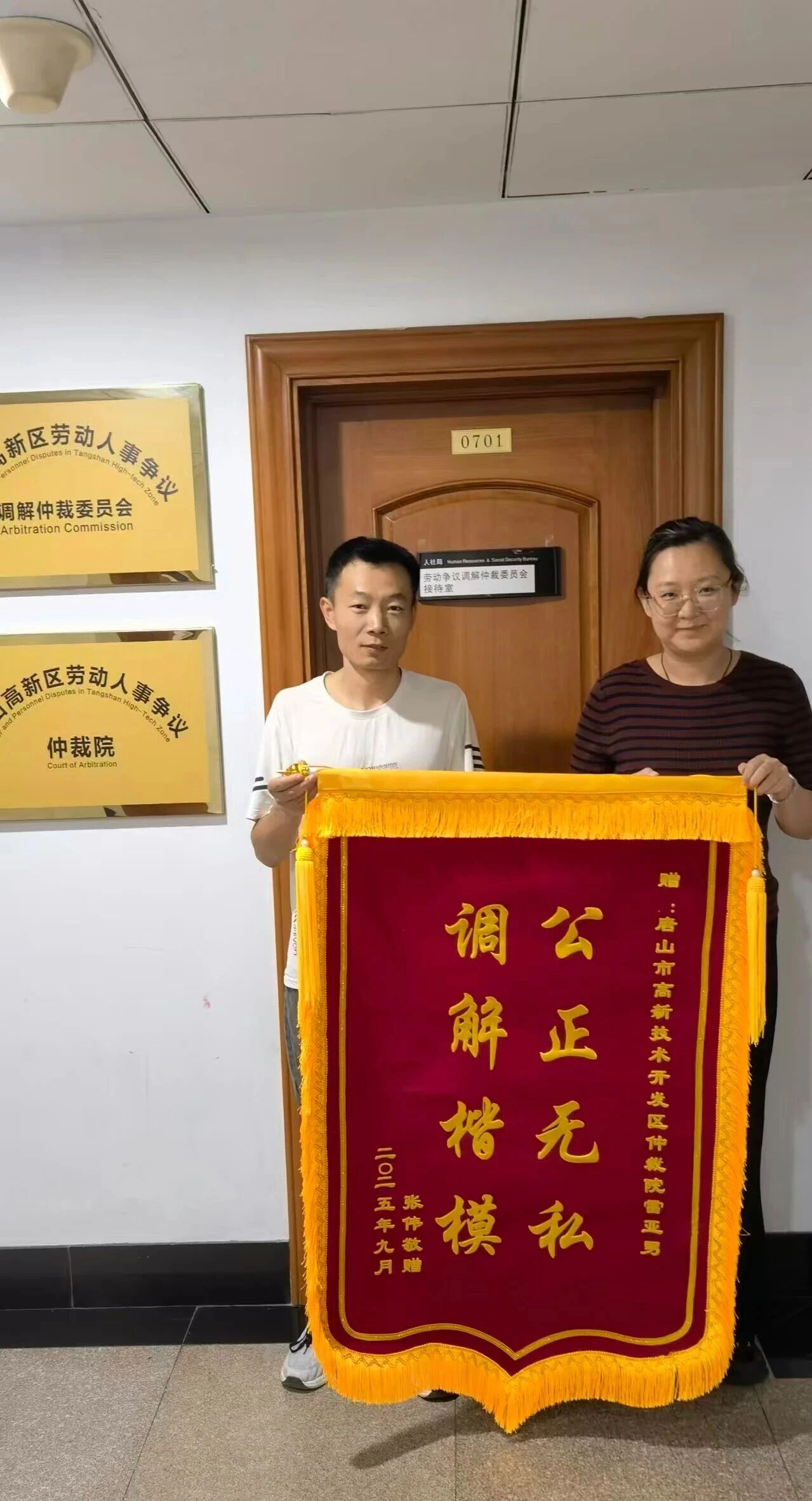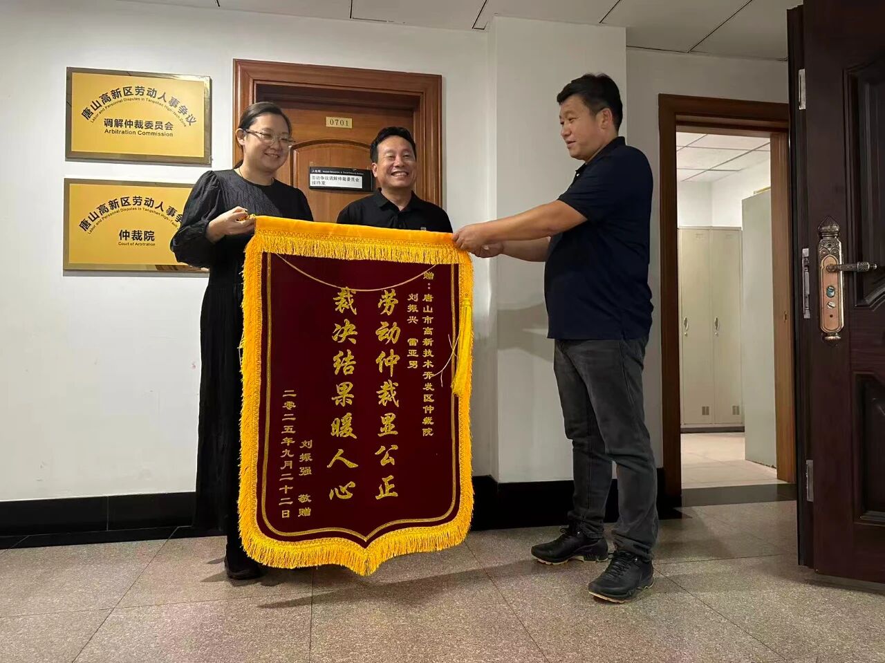 仲裁程序依法有序推進(jìn),既堅(jiān)守公正底線,又兼顧效率,贏得了雙方由衷認(rèn)可。為表感激,勞動(dòng)者送來(lái)錦旗,上書(shū)“為民解憂(yōu)伸援手、仲裁公正暖人心”;施工單位也獻(xiàn)上錦旗,題有“勞動(dòng)仲裁顯公正、裁決結(jié)果暖人心”。兩面錦旗,字字飽含深情,句句滿(mǎn)是真誠(chéng),最終都落在“暖人心”三字上,深刻折射出群眾對(duì)公正服務(wù)的信賴(lài)與贊許。