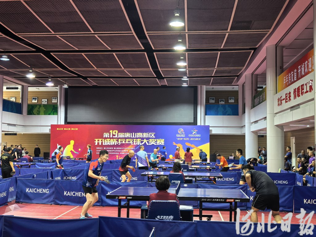 第19屆唐山高新區(qū)開誠杯乒乓球大獎賽現(xiàn)場。