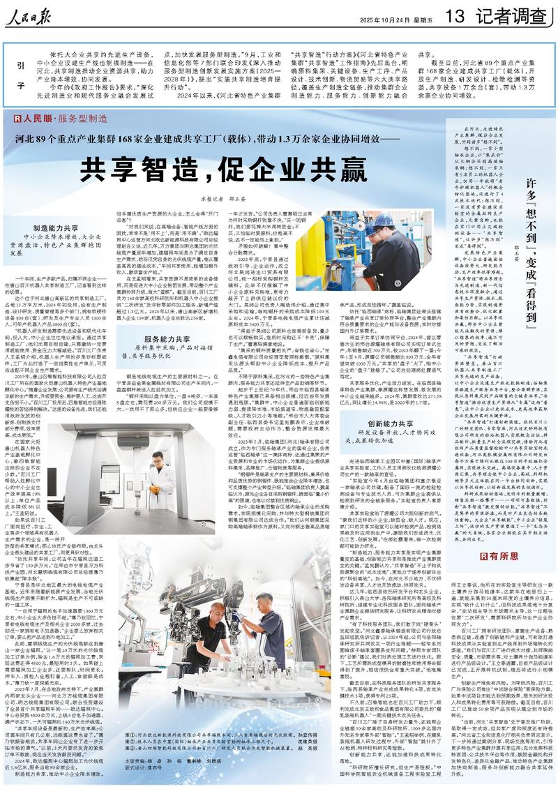 “制造能力、服務能力共享是實現產業集群量變的基礎,創新能力共享則是推動產業集群質變的關鍵。”孟憲鵬認為,“共享智造”不止于構筑資源聚合的“成本洼地”,更致力于涵養創新共生的“科創高地”。如今,在河北不少地方,不僅研發設備共享,人才也開放流動、協同攻關。