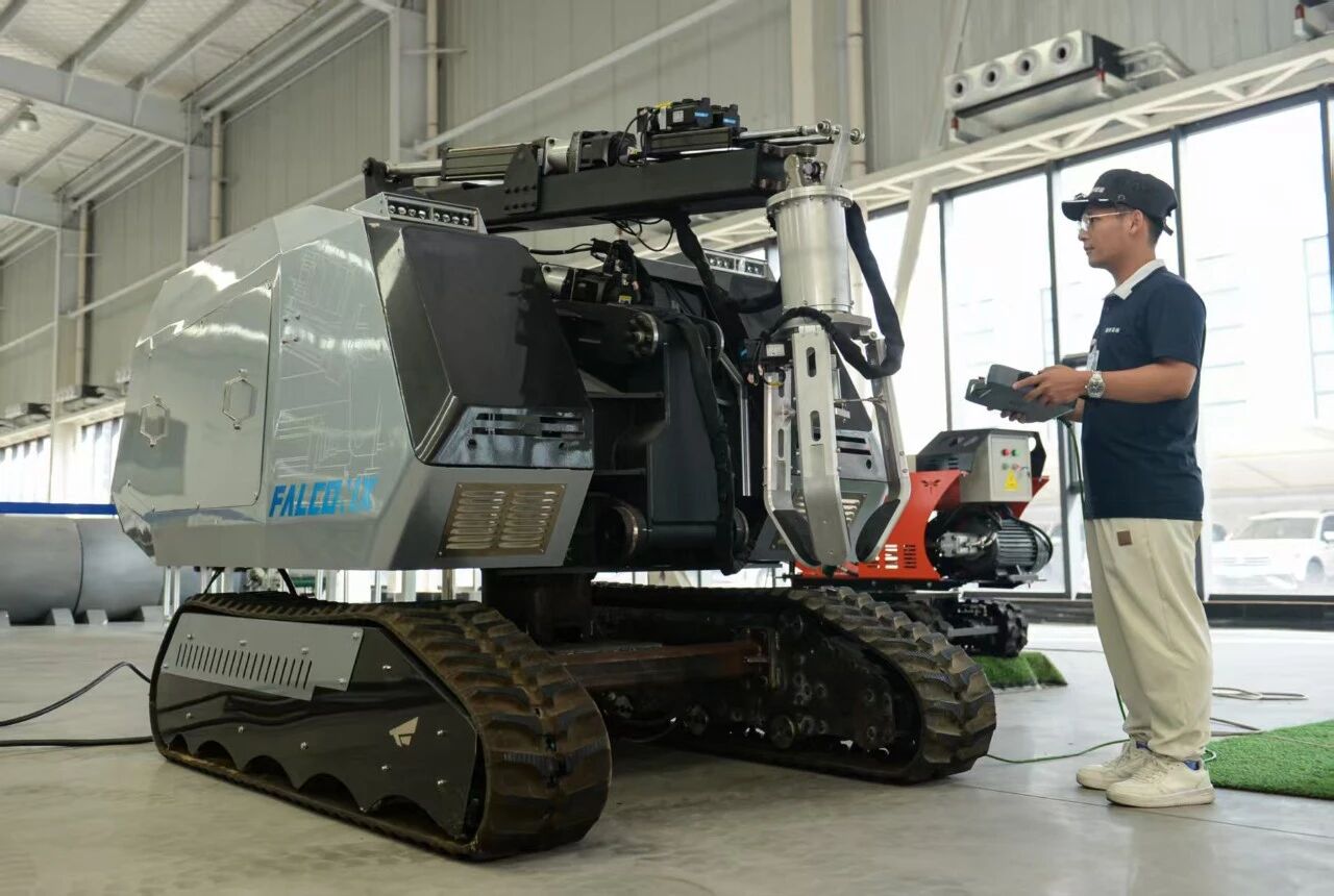 唐山鷹眼智能科技有限公司工作人員進行操作特種機器人 圖/杜雯拓攝
