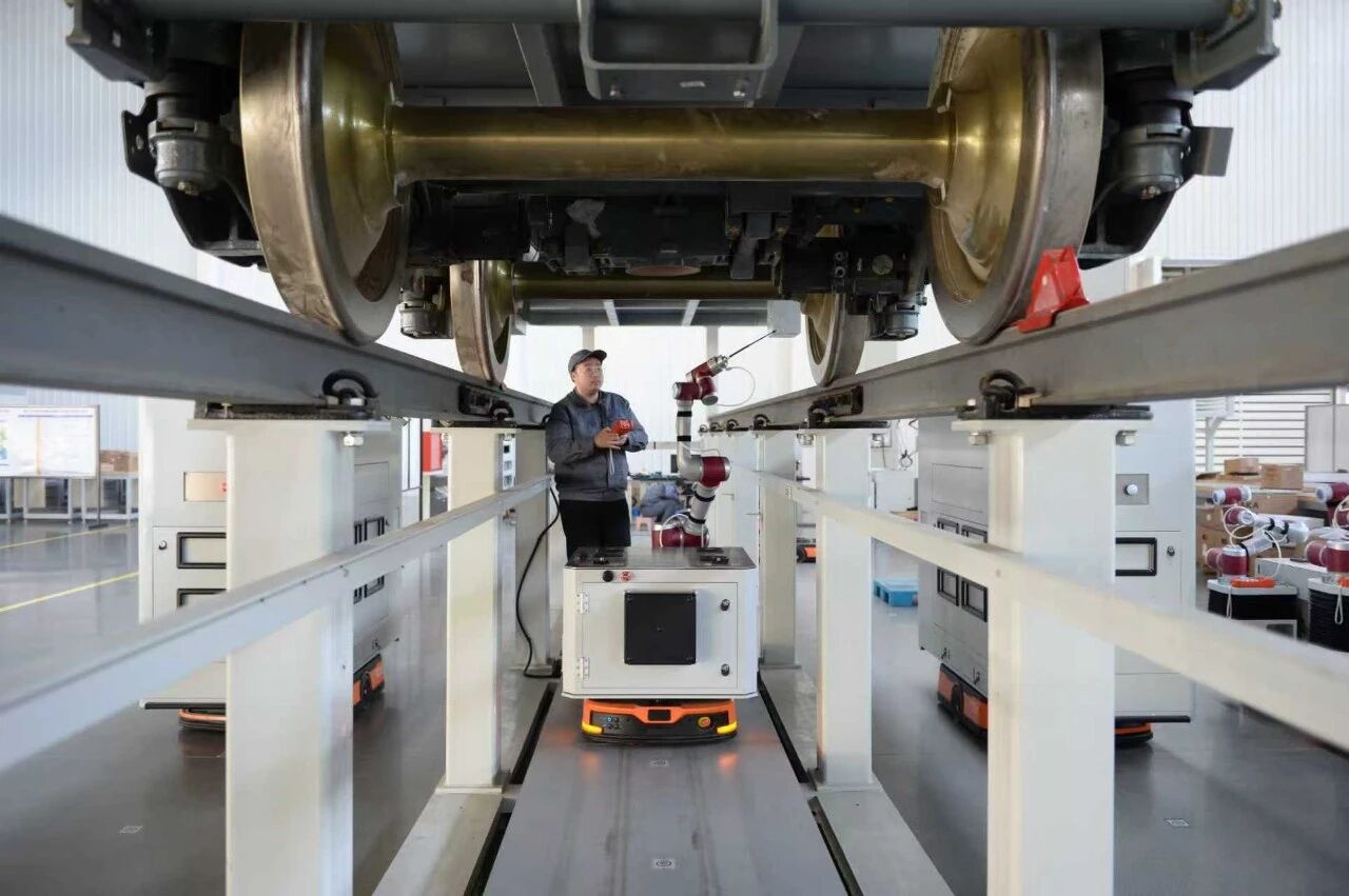 唐山百川機器人共享制造工廠內(nèi)技術(shù)工人正在調(diào)試車底吹掃機器人 圖/呂澤宣攝
