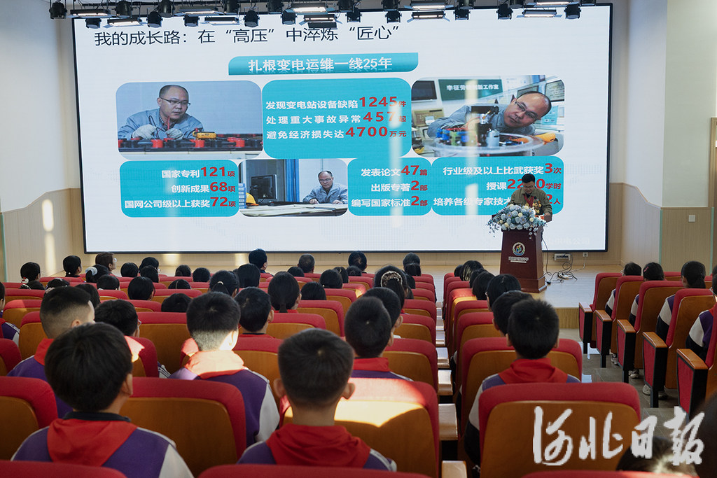 此次活動(dòng)特別邀請(qǐng)了國(guó)網(wǎng)冀北電力公司唐山供電公司特級(jí)技師、大國(guó)工匠李征為師生們授課。作為李大釗的故鄉(xiāng)人,李征為全體師生帶來(lái)一堂兼具紅色基因傳承、工匠精神滋養(yǎng)與城市精神浸潤(rùn)的思政課。