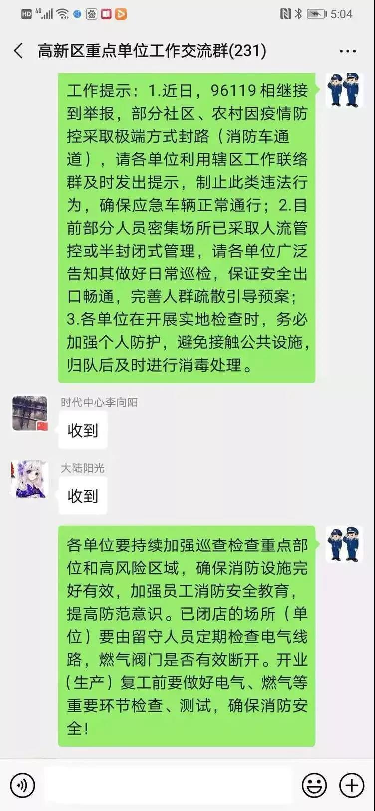“在線互動+全時宣教”,打造立體宣傳陣地。針對當(dāng)前市民居家的特點,大隊借助重點單位、社區(qū)物業(yè)管理等微信群每日進行針對性宣傳教育和網(wǎng)絡(luò)培訓(xùn)。充分發(fā)揮微信群重要作用,不間斷提醒注意防疫工作以及防火安全,提高了社會單位的消防安全意識,加大消防安全知識的宣傳力度,擴大宣傳覆蓋面,讓消防安全工作深入人心,營造了濃厚的消防安全氛圍。