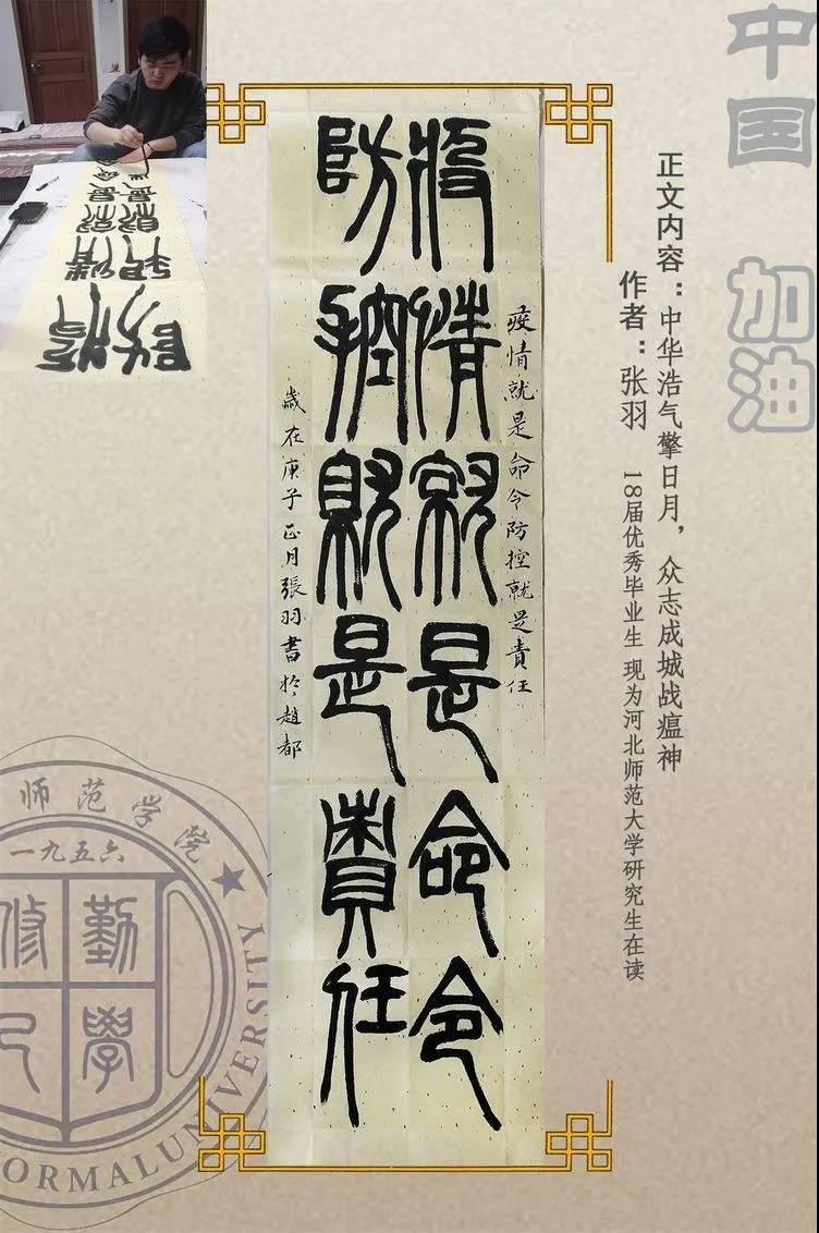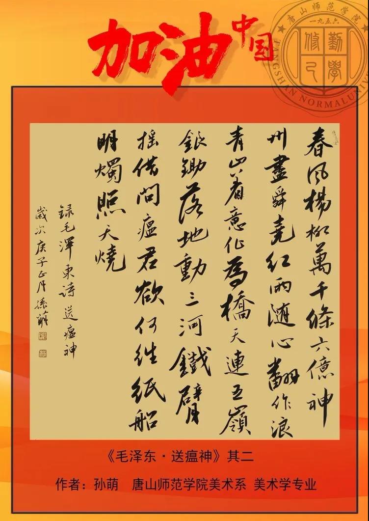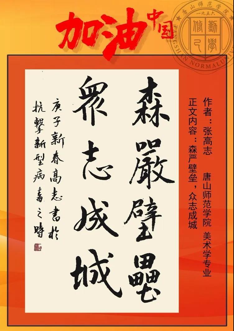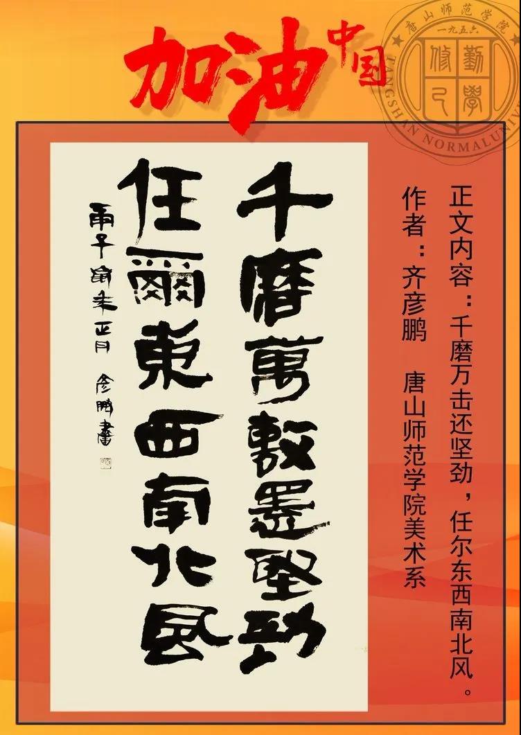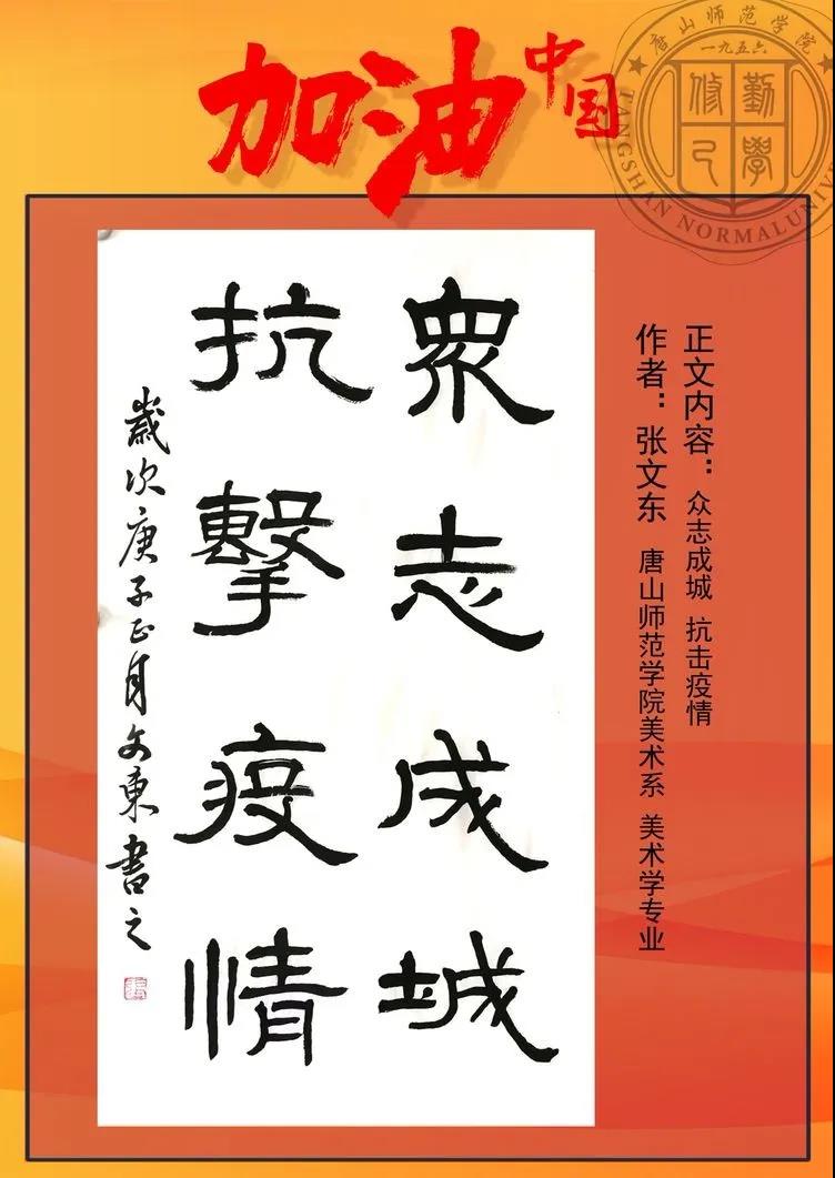 為深入貫徹黨中央關于疫情防范工作指示精神,將疫情防控科普宣傳做到基層社區,唐山師范學院美術系黨總支和高新區街道辦事處龍悅新居社區聯合舉辦用“藝”抗疫線上書畫展覽,來加強社區群眾防疫抗疫的自覺性和主動性,豐富人們的居家文化生活。用心刻畫危難時刻大愛無疆的醫護人員、形象有趣的繪制了宣傳防疫科普知識和精心創作了助力抗疫成功的宣傳海報。一幅幅精彩的書畫作品以其豐富的表現力、感染力展現了唐山師范學院美術系師生們扎實的藝術功底,向群眾傳遞了防疫抗疫的正能量。