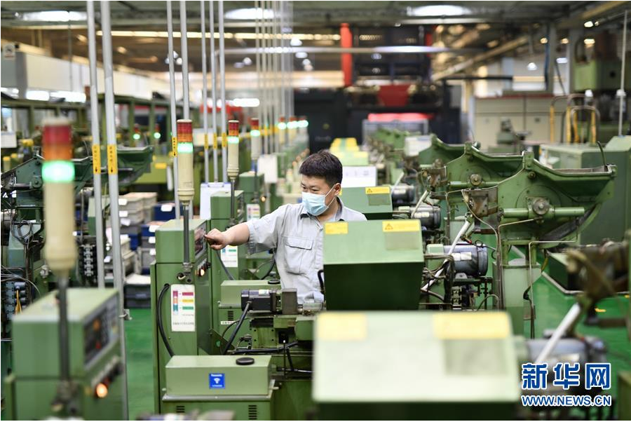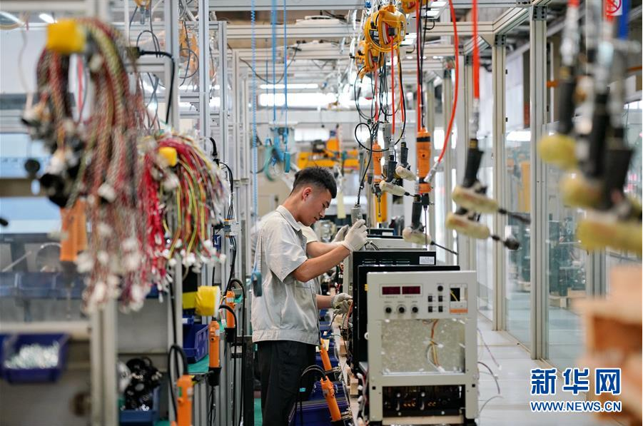 7月8日,唐山松下產業機器有限公司的工人在電焊機零部件生產線上工作。新華社記者 牟宇 攝