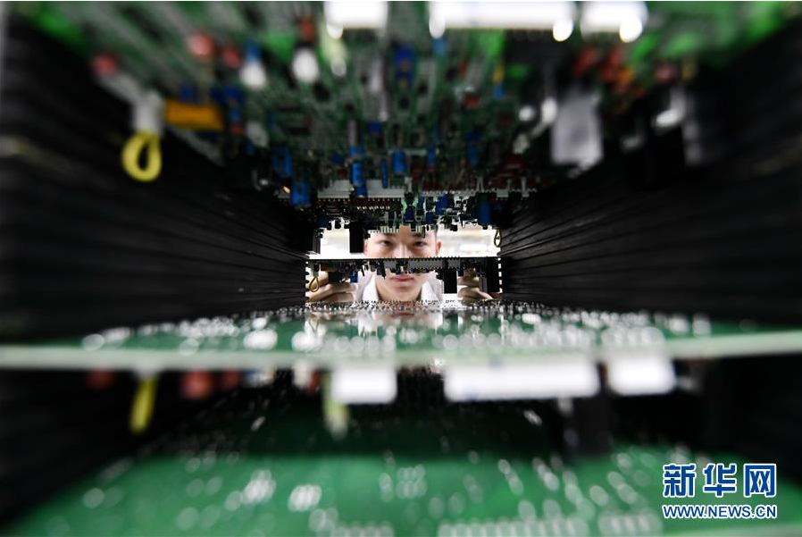 7月8日,唐山松下產業機器有限公司的工人在加工電焊機電路板。新華社記者 牟宇 攝