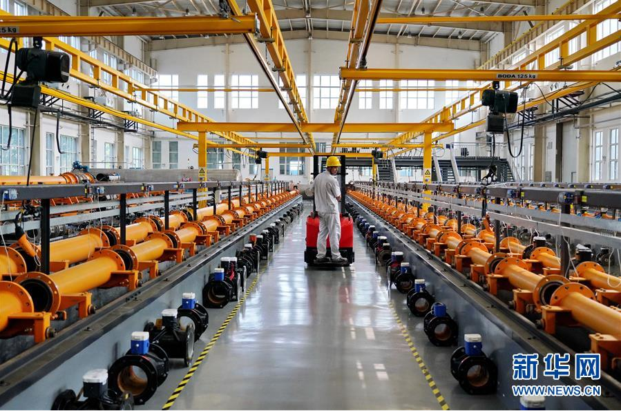 7月7日,在唐山匯中儀表有限公司檢測和校準實驗室內,工作人員在運輸待檢測儀表產品。新華社記者 牟宇 攝