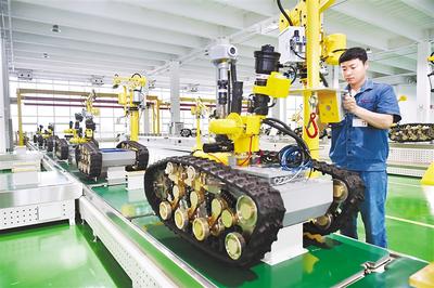 7月30日,在唐山國家高新技術(shù)產(chǎn)業(yè)開發(fā)區(qū)中信重工開誠智能裝備有限公司,技術(shù)人員正在調(diào)試特種機器人產(chǎn)品。河北日報記者 趙 杰攝