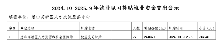 關于擬撥付2024.10-2025.9高新區人社局就業見習補貼的公示