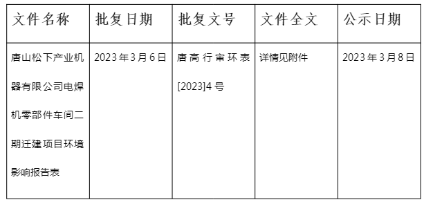 關(guān)于電焊機零部件車間二期遷建項目環(huán)境影響評價文件的審批決定公示