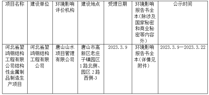 河北省堃鴻鋼結構工程有限公司結構性金屬制品制造生產項目環境影響評價公眾參與第三次公示