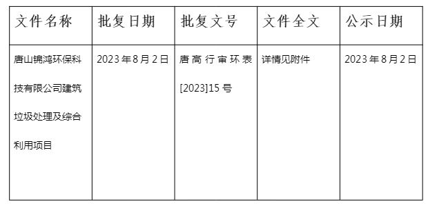 關于唐山錦鴻環保科技有限公司建筑垃圾處理及綜合利用項目環境影響評價文件的審批決定公示