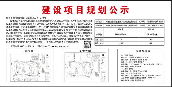 光纖感知智能消防預警系列產品研發生產項目(編號唐規高新批前公示第[2023]032號)