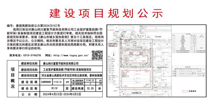 工業窯爐富氧助燃(節能環保)裝備制造項目(編號唐規高新批前公示第2024[015]號)