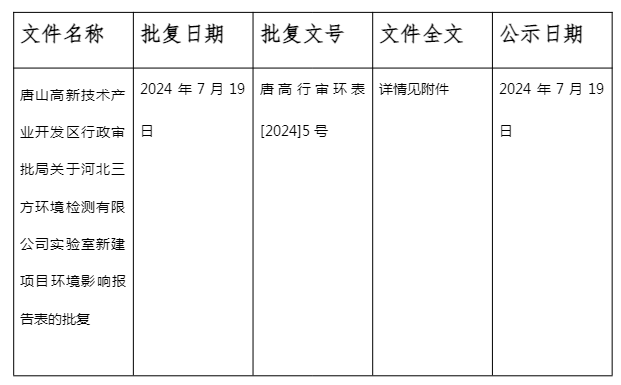 關于河北三方環境檢測有限公司實驗室新建項目環境影響評價文件的審批決定公示