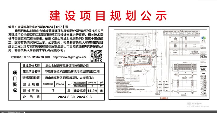 建設項目規劃公示(唐規高新批前公示第2024【017】)號