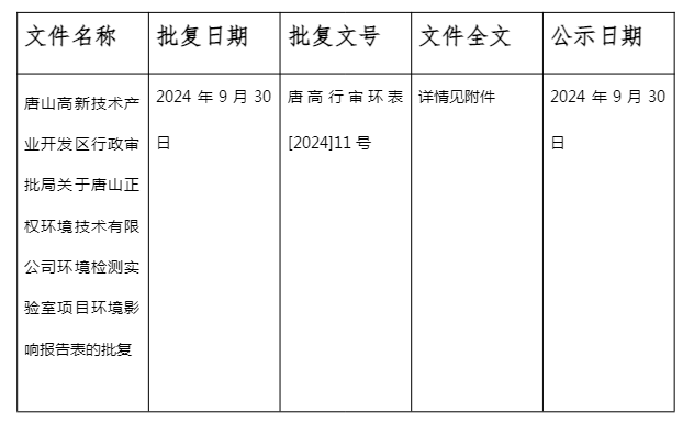 關于唐山正權環境技術有限公司環境檢測實驗室項目環境影響評價文件的審批決定公示