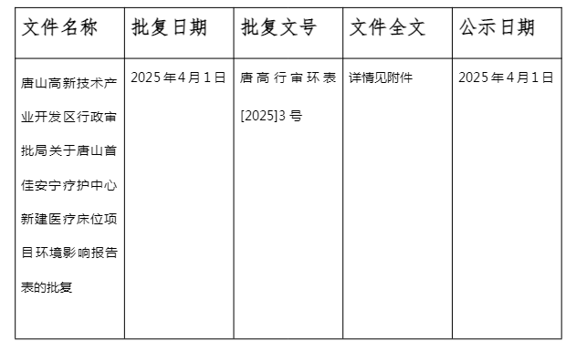 關于唐山首佳安寧療護中心新建醫療床位項目環境影響評價文件的審批決定公示