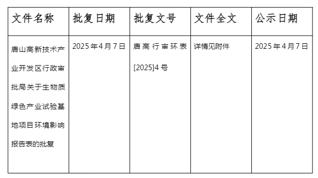 關于生物質綠色產業試驗基地項目環境影響評價文件的審批決定公示