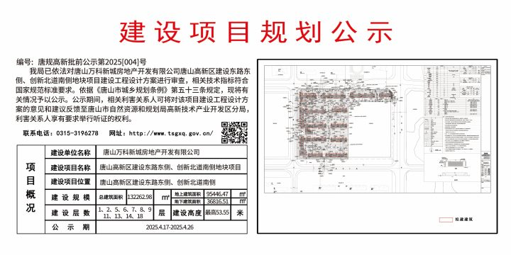 建設(shè)項(xiàng)目規(guī)劃公示唐規(guī)高新批前第2025【004】號(hào)