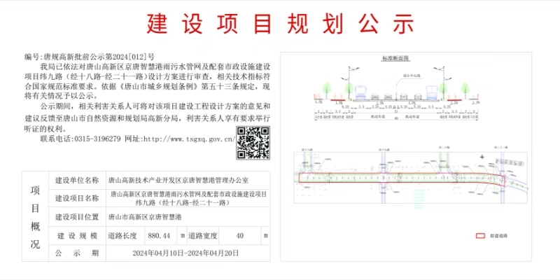 建設(shè)項目規(guī)劃公示-編號唐規(guī)高新批前公示第2024[012]號