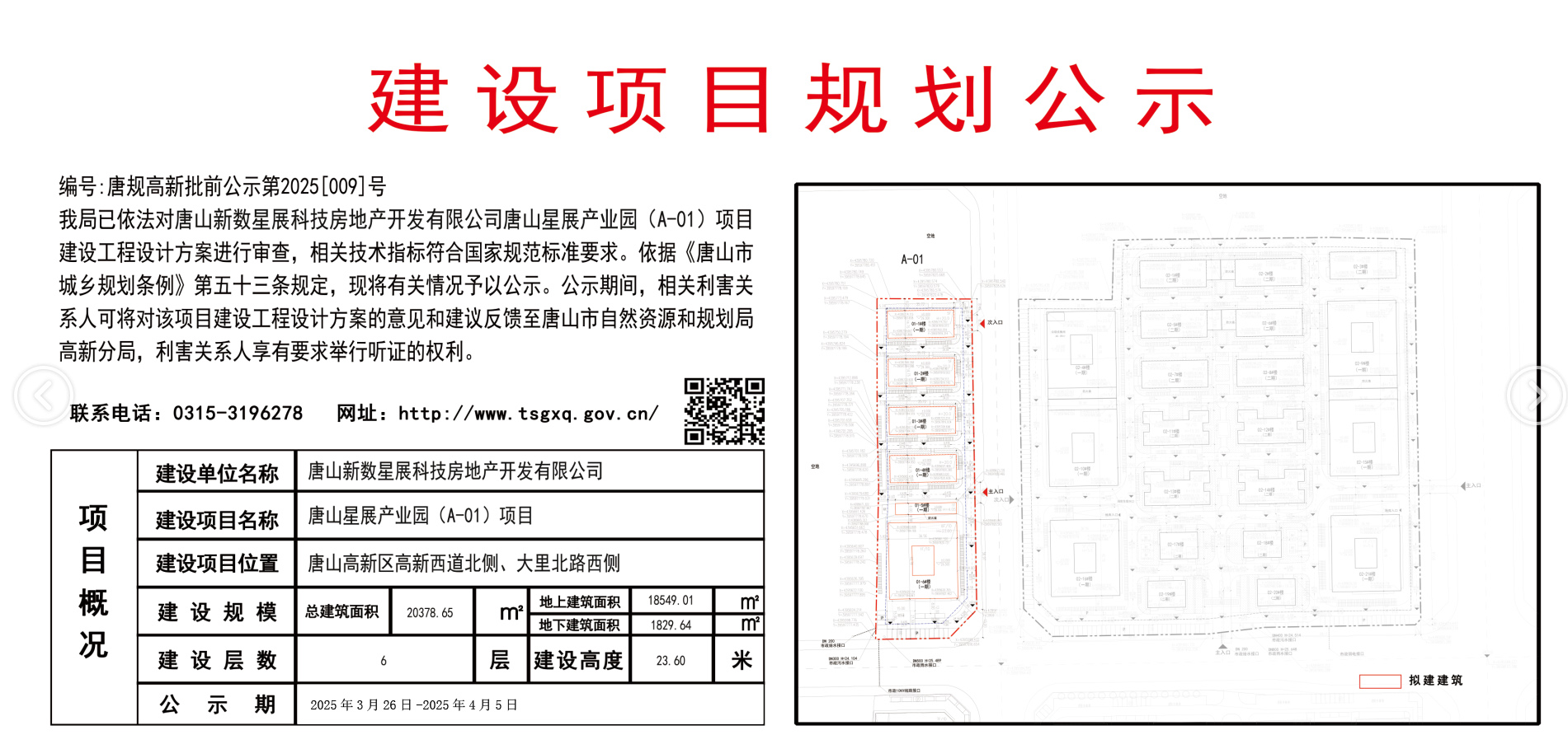 建設項目規劃公示-編號唐規高新批前公示第2025[009]號
