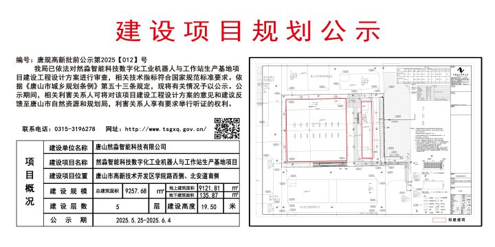 建設項目規劃公示編號唐規高新批前公示第2025【012】號
