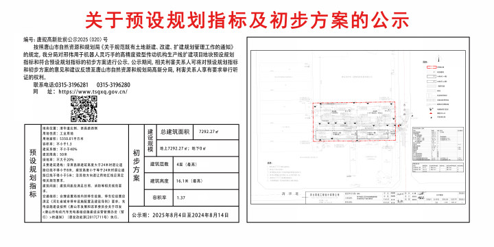 關于預設規(guī)劃指標及初步方案的公示(編號唐規(guī)高新批前公示2025(020)號)