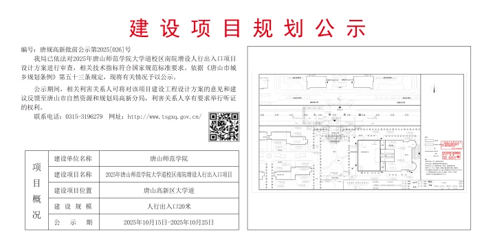 建設項目規劃公示-編號唐規高新批前公示第2025[026]號