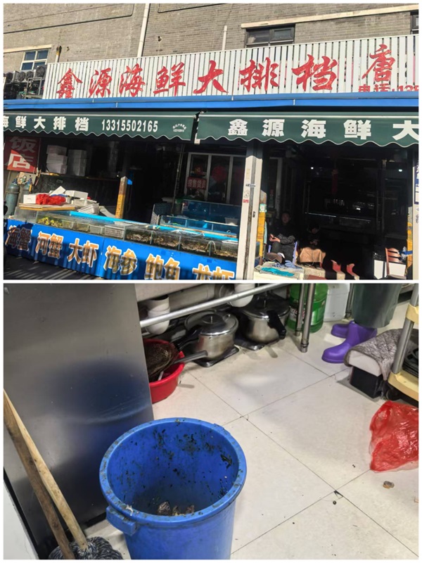 上榜理由:圾桶未蓋蓋,食品落地存放,環境衛生差。