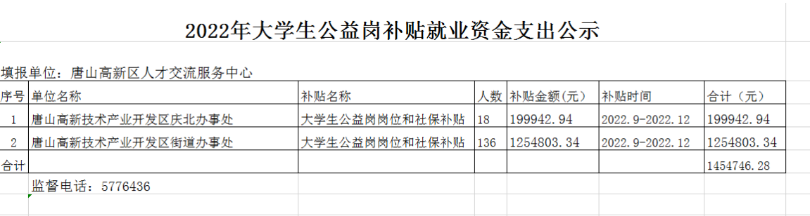 2023年大學生公益崗補貼就業資金支出公示(慶北辦事處、街道辦事處)