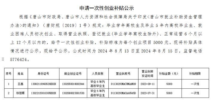 申請一次性創業補貼公示