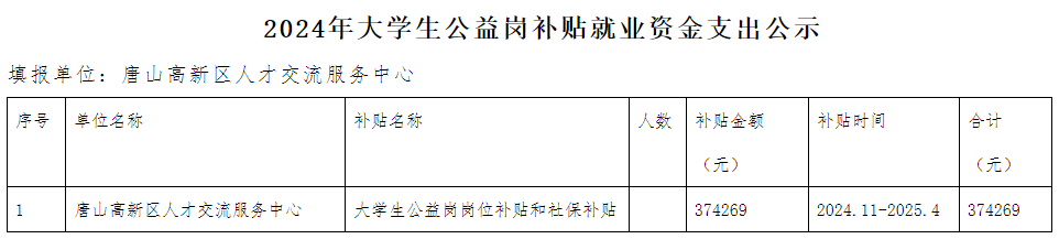 關(guān)于擬撥付2024.11-2025.4唐山高新區(qū)大學(xué)生公益崗崗位和社保補(bǔ)貼的公示