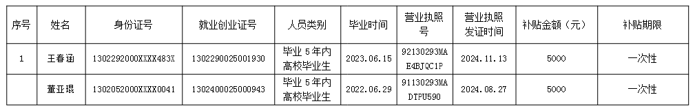 貼,補貼標準為每個創業項目5000元。現將補貼情況公示,公示日期為2025年12月4日至2025年12月8